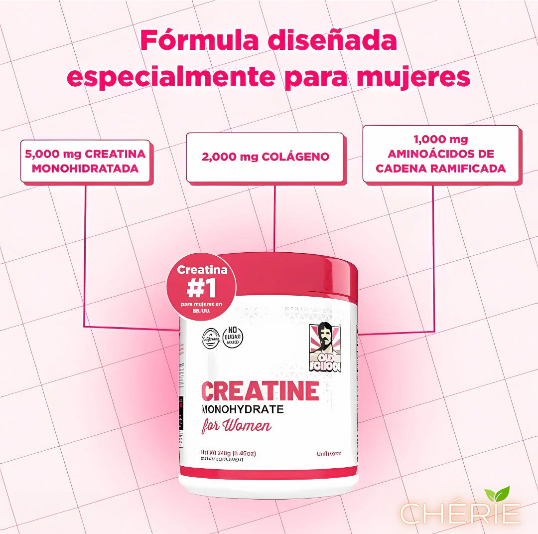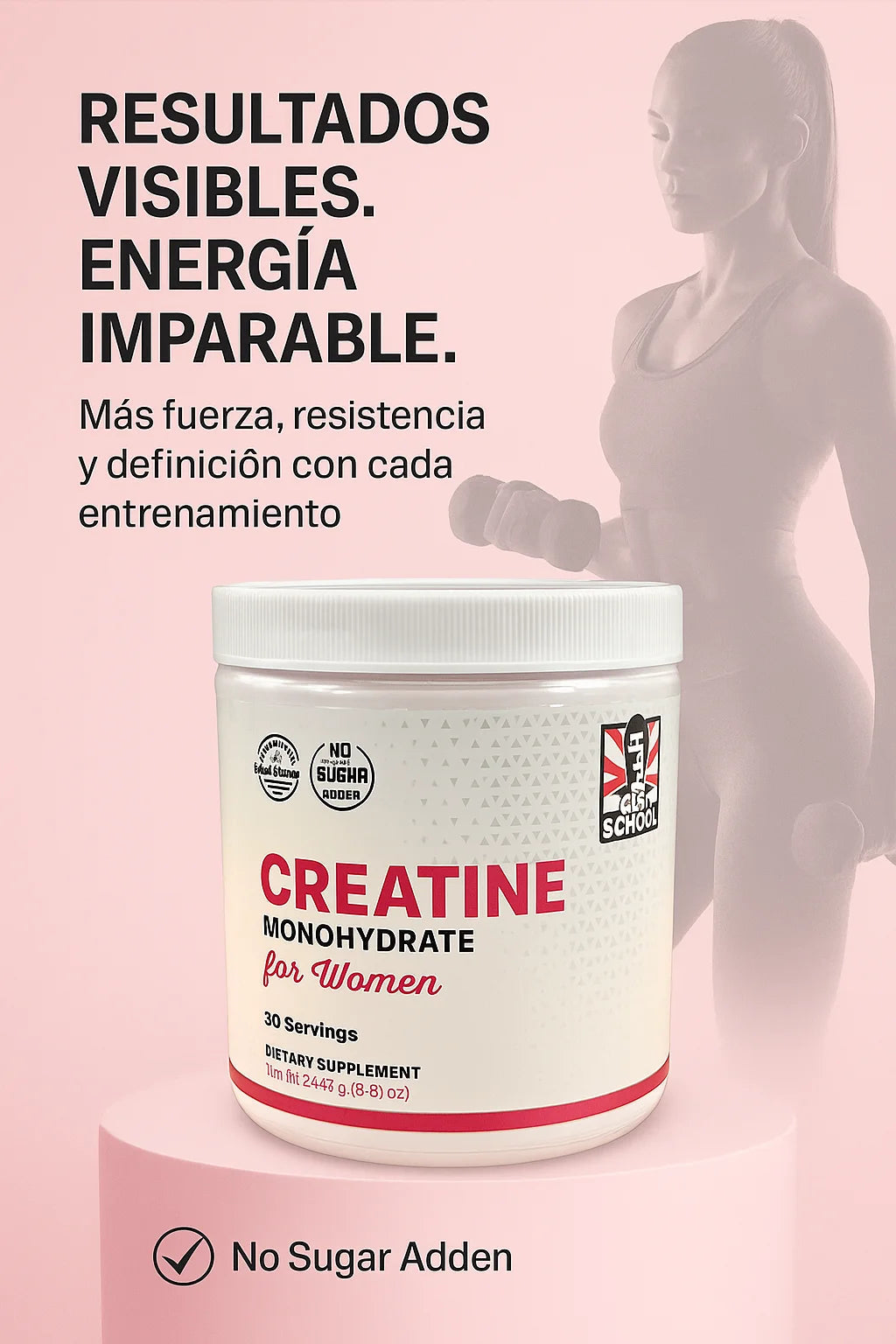 Con la Creatina Old School for Women, potencia tus entrenamientos, mejora el crecimiento de glúteos 🍑 y fortalece tu cabello, uñas.